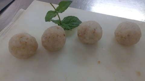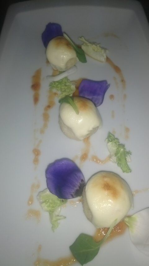 Albondigas de bacalao confitado a las dos naranjas y tocan las trompetas.