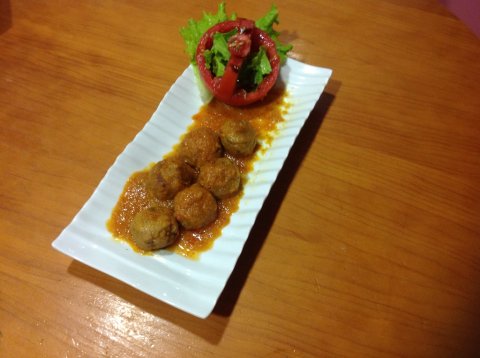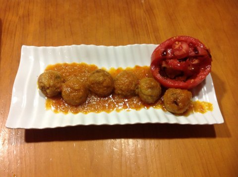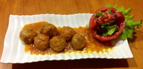 Freimos las albóndigas en aceite bien caliente y una vez fritas las posamos sobre papel absorbente y las introducimos en la salsa unos 20mn y listo.