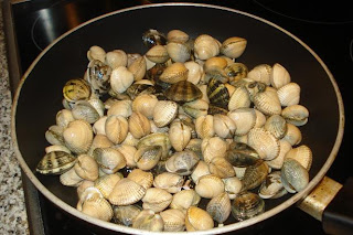 Cuando el ajo empiece a dorar, añadir almejas y berberechos.