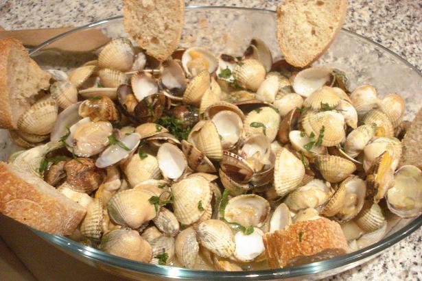 Dejar cocinar unos minutos a fuego fuerte. Cuando todo el marisco esté abierto, con la ayuda de una espumadera sacar el marisco y disponerlas en una pirófila.
