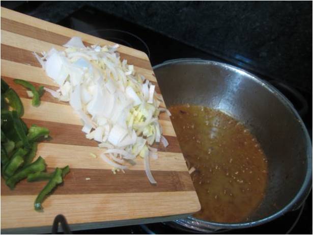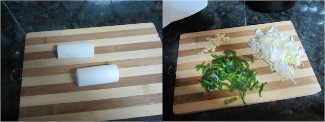 Cortamos el puerro , el pimiento verde y los dos dientes de ajos, en laminas finas .