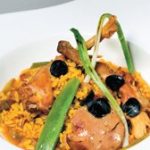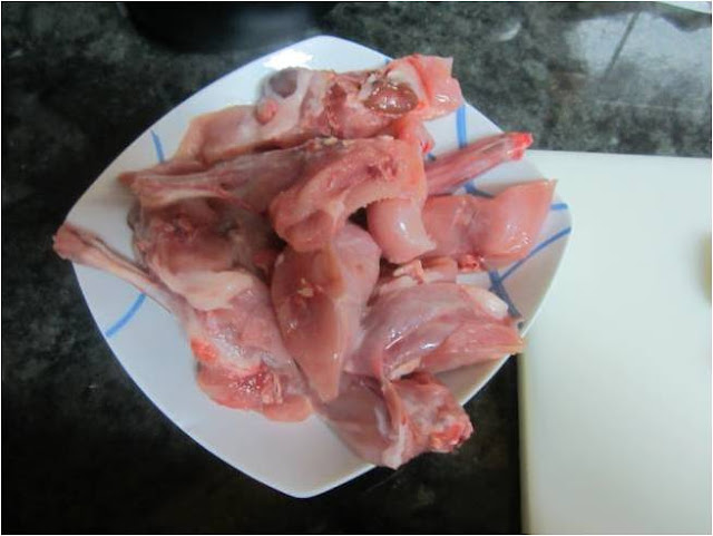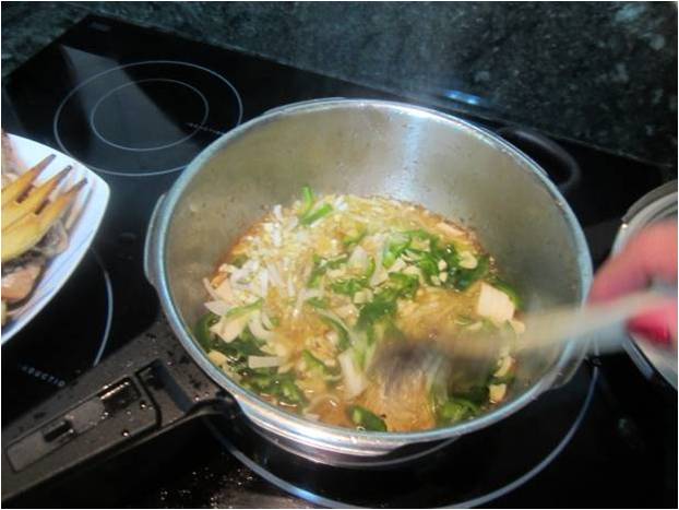 Sacamos el conejo y reservamos, añadimos los ajos el pimiento y los puerros
