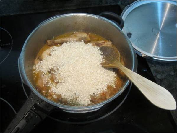 Echamos el arroz y un poco de sal removemos y tapamos.