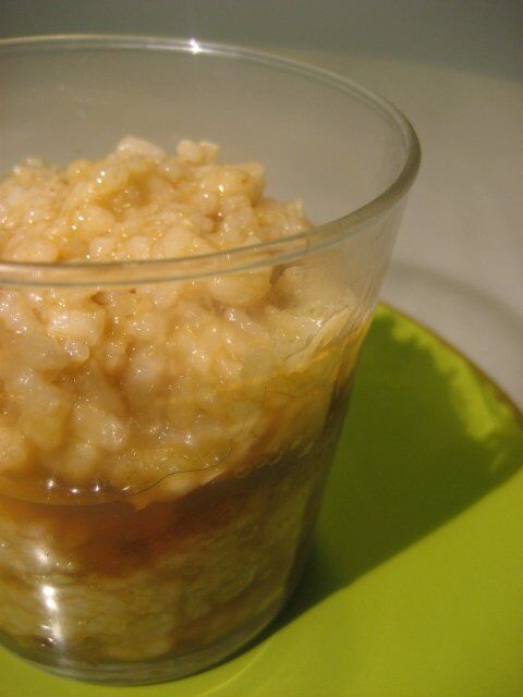 Colocar el arroz en una bonita copa, adornado con un par de almendras tiernas, o la hierba fresca que te guste.