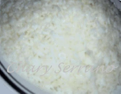 Tened en cuenta que prácticamente es la misma receta que hago para el arroz con leche, que el grano debe quedar muy tierno y en este caso, bien espeso para que luego quede con una forma bonita y no se deshaga.