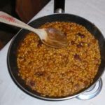 Para esta fácil receta cocinamos y graneamos el arroz. Por cada taza de arroz agregamos una taza de agua. En aceite caliente doramos un poco de ajo molido, agregamos el agua, sal necesaria y agregamos el arroz. Cuando rompe el hervor esperamos diez minutos y bajamos el fuego por 15 minutos más, hasta que este graneado el arroz.