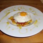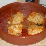 Ponemos en una sartén amplia medio dedo de aceite de oliva, sofreimos los ajitos laminados junto a la guindilla, cuando estén dorados añadimos los lomos de bacalao con la piel hacia abajo, giramos a los 4 minutos, dejamos por la otra cara un par de minutos mas y retiramos a un plato, mientras tanto tendremos unas patatas cortadas en rodajas friéndose en otra sartén,en ese aceite con los ajos añadimos la cebolleta bien picada, pimiento en tiras y cebollino, cuando esté bien pochada el pimentón, retiramos la sartén del fuego y removemos, añadimos el vino y volvemos a poner en el fuego, removemos bien y dejamos que se evapore el alcohol, añadimos las patatas previamente puestas sobre papel secante para retirar el exceso de aceite y ponemos en la sartén como cama, encima los lomos, tapamos y dejamos cocer a fuego medio 10 minutos mas.