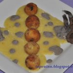 Albondigas de bacalao confitado a las dos naranjas y tocan las trompetas.