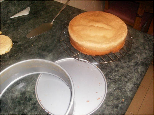 Hacemos una glasa real (para cubrir tartas) 350 g de azúcar glass, 1 clara de huevo y una cucharadita de zumo de limón y batimos.