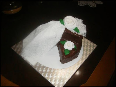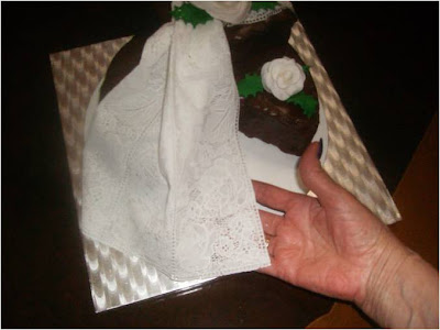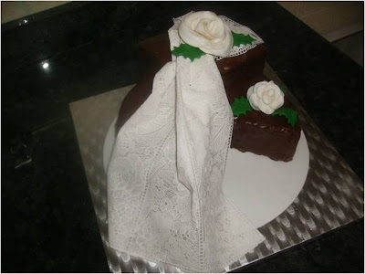Puedes doblarla o fruncirla como una tela, al bizcocho le corte un triangulo y se lo puse encima. cubriendo todo de cobertura de chocolate.
