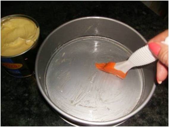 Con una brocha engrasamos todo el molde de mantequilla, espolvoreamos de harina que cubra por todos los lados moviendo el molde y sacudimos boca abajo dándole unos golpes para que se quite toda la harina sobrante.