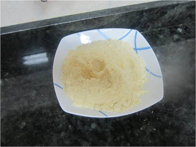 Encendemos el horno a 180º pesamos la almendra y la tamizamos .