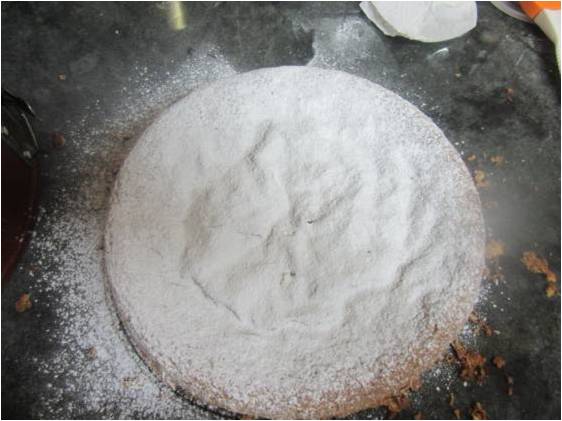 Sacamos del horno y dejamos enfriar unos 5 minutos desmoldamos el bizcocho y dejamos sobre una rejilla para que se enfrié del todo, una vez frio espolvoreamos con azúcar glass.