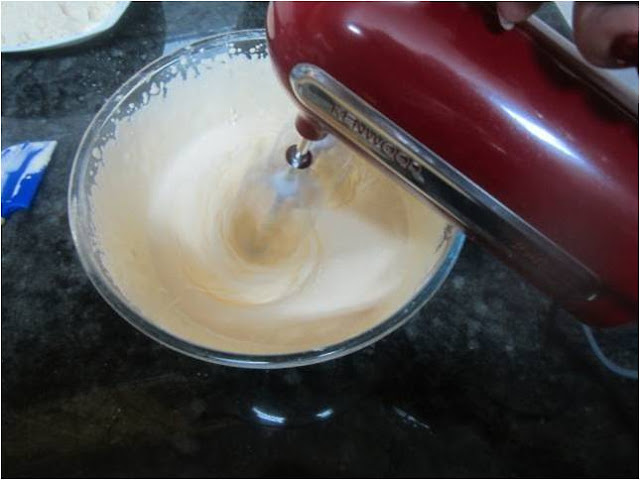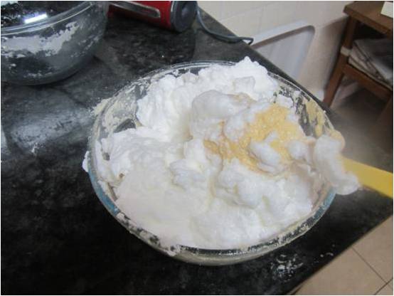 Batimos las claras a punto de nieve , que estén duras que al ponerlas boca abajo no se caigan del bol.