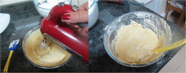 Le echamos las almendras a las yemas montadas y batimos un poco con la batidora para que no queden grumos.