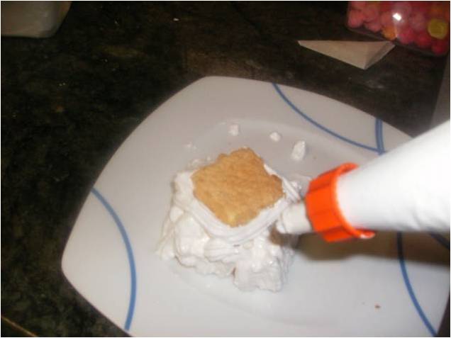 Ponemos el merengue en una manga y vamos rellenando los bizcochos.