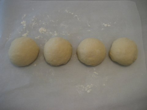 5º.- Enhornar y Cocer: colocar los bollitos sobre papel vegetal y sobre una bandeja. Parte la cocción de frio y con el horno a una temperatura de “200 º C.”. Vigilar hasta su correcta cocción. Tienes que controlar el tiempo, según tu experiencia personal, empezando por veinte minutos. Y tienes que controlar la temperatura, a veces es bueno apagar el horno los últimos minutos. Si toman demasiado color cúbrelos con papel de aluminio.