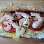 Bocata de gambas y langostinos marinados con mayonesa de wasabi