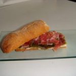 Cortar y abrir el pan de chapata por la mitad, cortar un buen trozo.