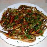 Lavamos los boquerones con agua fría y los ponemos en una fuente bien arregladitos.
