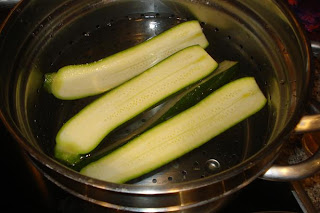 Cortar los calabacines en dos y hervirlos durante 8-10 minutos.