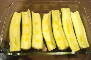 Sacar los calabacines del horno, bajar a 180º y seguir teniendo el horno encendido.