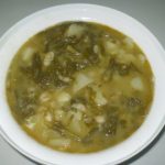 Añadimos los grelos cortados en trozos pequeños y las patatas también cortadas en trozos pequeños y el chorizo en rodajas. Añadimos también sal. Y programamos 1/2 hora, 100º, velocidad cuchara y giro a la izquierda.