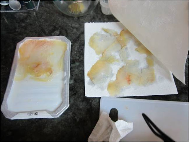 Los paquetes de los ahumados suelen tener aceite, los ponemos entre dos papeles de cocina para que absorban el aceite y dejarlos lo menos grasos posible.