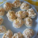 Picamos el huevo duro y rompemos los palitos de cangrejo con los dedos.
