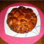 masa .Hice 3 bolas y estire una a una… las pincele con mermelada y puse las frutillas por encima… unos pegoticos de mantequilla y cortar en lonchas de 2 cm… dejar levar por segunda vez en el horno a 50º por una hora mas.