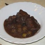 Ingredietnes: 1/2 kg de carrilladas de cerdo, 1 manzana ácida, 1 vaso de Pedro Ximenez, 1 cebolla, 2 zanahorias, pimienta negra, canela en rama, aceite de oliva y salsa de soja.