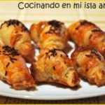Se extiende la masa de hojaldre con un rodillo y se cortan rectángulos todos del mismo tamaño, se pone una cucharada de relleno en cada rectángulo y se cierra como un librito. Se sellan los bordes con un tenedor , y se van colocando en una bandeja de horno, dejando un espacio entre  hojaldre y hojaldre porque crece al hornearse.