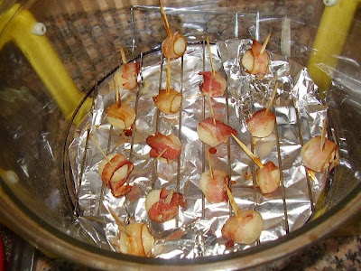 Bajamos la temperatura a 225 grados y dejamos hacer unos 10 minutos o hasta que el bacon está tostadito en los bordes y un poco seco.