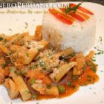 – En una olla freír bien la cebolla y el ají escabeche, agregar los ajos, palillo, papa, arvejitas, sal, mitad del perejil y hierba buena picadas, un poco del caldo de mondongo, cubito de pollo dejar cocinar, cuando este casi cocinada la papa, agregar el mondongo, revisar la sal, si necesita agregar más caldo y finalmente el resto de hierba buena y perejil; al apagar se le debe escurrir medio limòn, o una cucharadita de zumo de limòn. Servir con arroz blanco.