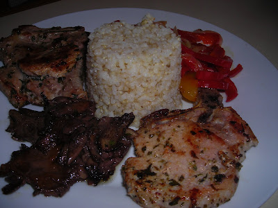 Champiñones a la plancha con chuletas de Sajonia
