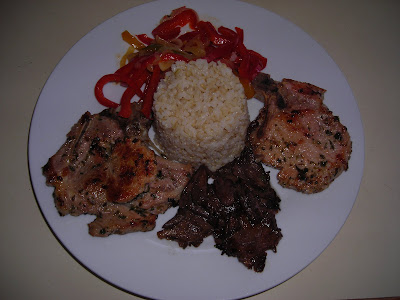Aquí las famosas chuletas de cerdo arómaticas a la plancha en buena compañía.