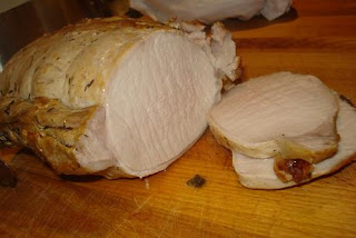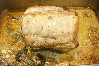 1 cinta de lomo de aprox. 1 kilo, aceite, mantequilla, laurel, salvia, romero, tomillo, vino blanco, leche, sal.