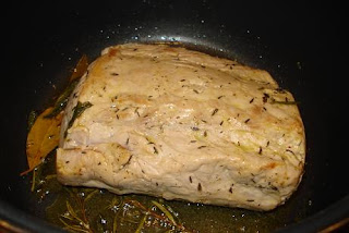 Es una receta sencilla para cocinar cinta de lomo, se suele acompañar con alubias blancas aliñadas con aceite y orégano. Yo preparé una crema de boletus, muy rica y que resultó ser un buen maridaje.