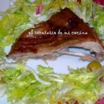 Dar vuelta después de una hora para que el cuero ya cocido se dore y se ponga crocante. Esta cocción dura de 5 a 6 h. ya sea en horno o en parrilla. Deje enfriar a temperatura ambiente, trocee y sirva a temperatura ambiente.