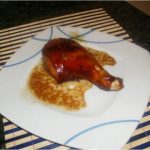 Si se cocina a la parrilla: Áselo con brasas suaves, en forma de círculo de manera que la parte gruesa de las brasas queden debajo de las patas, píntelo con la marinada, de vez en cuando, durante la cocción. No lo de vuelta; se asa todo el tiempo del lado del cuero.
