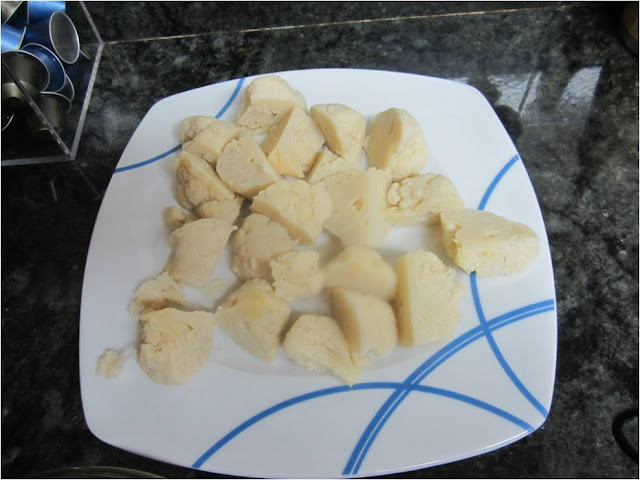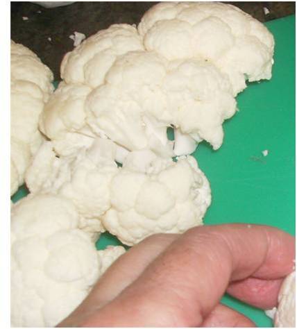 Lavamos la coliflor y cortamos las parte duras de los ramos, cocemos con agua y sal y un chorrito de leche.