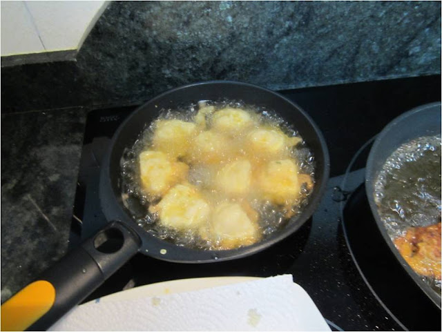 Como os habéis visto no van rebozados en harina, solo en huevo y los hace mas ligero y ricos, para ponerlos de una entrada en una comida acompañado de un alioli y una mayonesa.