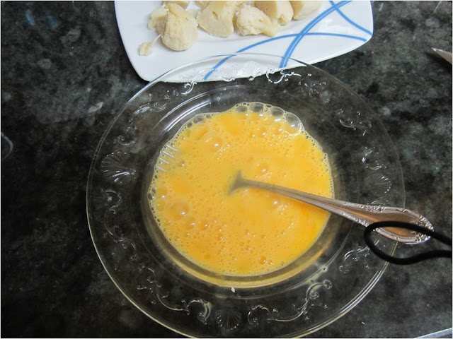 Los pasamos por el huevo batido que se impregne bien por todos los lados.
