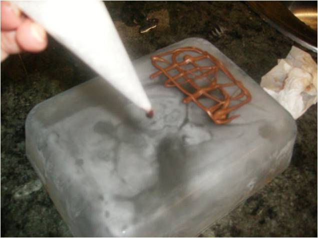 Si queremos hacer celosías, ponemos  un sirplast o una pieza que sea lisa en el congelador, y  endurecen rápido