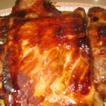 Costillas de cerdo con salsa de miel, mostaza y soja.