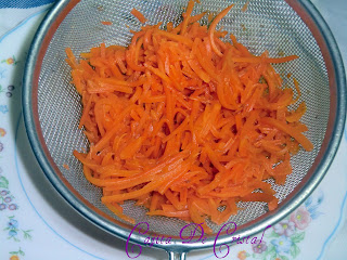 Rellenamos las patatas con el cous-cous. Hervimos la zanahoria rallada y la reservamos.