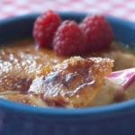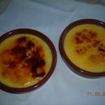Fritos crujientes de arroz con leche sobre crema espumosa de canela