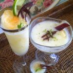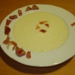 Cortar el melón a trozos pequeños y ponerlo en la batidora añadiendo la crema de leche.