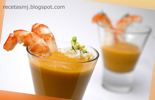 En primer lugar ponemos a cocer los gambones durante 5 minutos. Pasado este tiempo escurrimos el agua y pasamos por el grifo de agua fría para que pare la cocción. Pelamos y reservamos en la nevera.