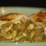 Tortilla de pollo, curry y compota de manzana